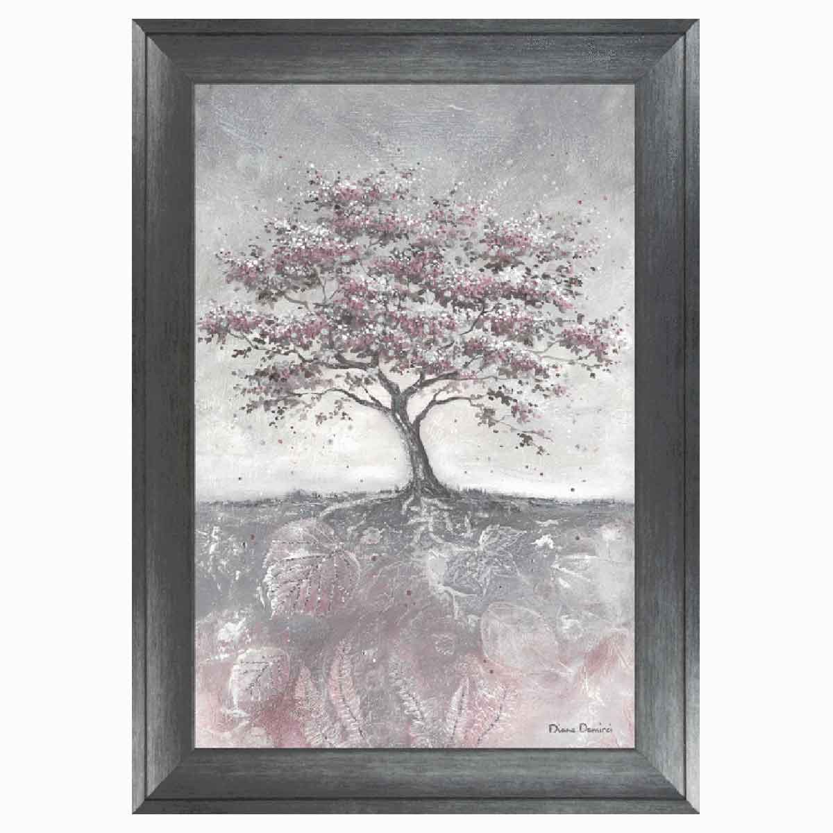 This Blossom stunning tree image by Diane Demirci has been carefully hand embellished with Silver coloured metal leaf and finished in a tasteful grey brushed wood effect frame.
