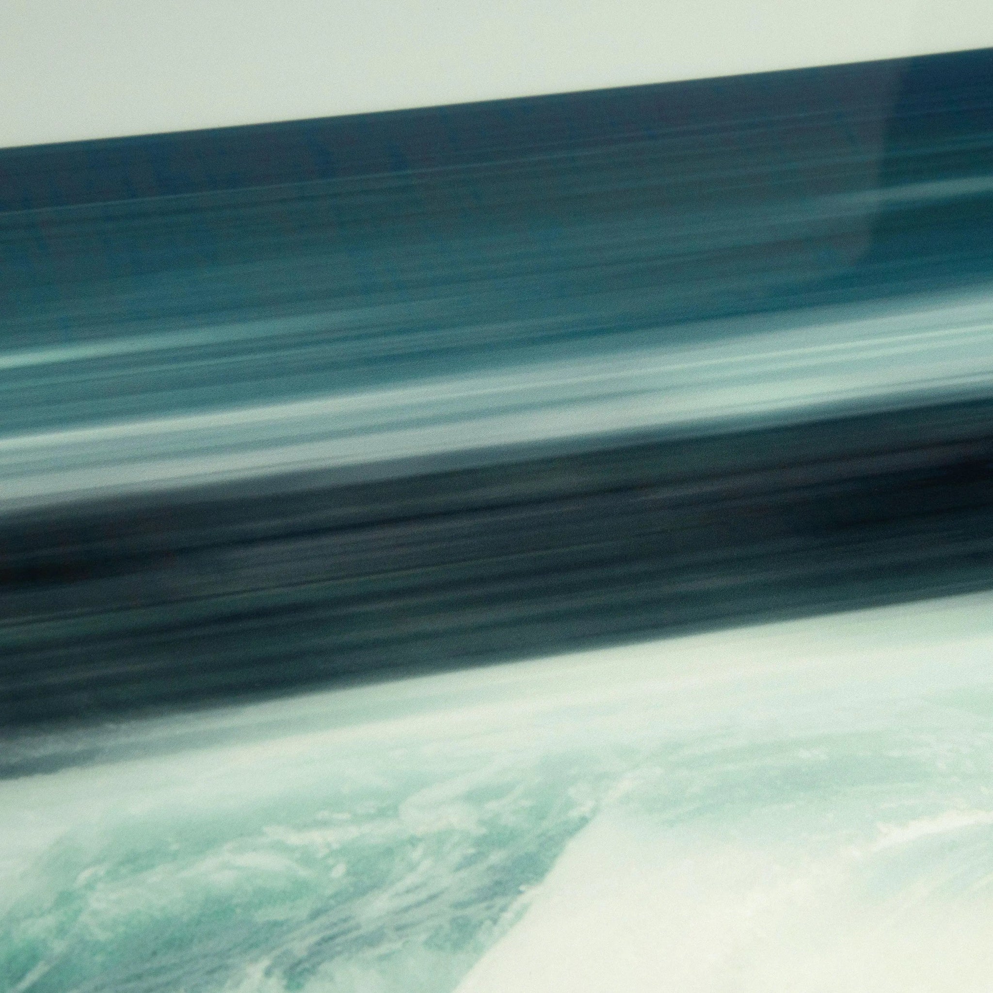 To expose the mood or atmosphere of the moment, Dirk Wustenhagen believes in digital manipulation to awaken deeper senses. Out of the Blue captures a surreal view of the expansive ocean. Using a vivid colour palette, the contrasting gradients reveal the intensity that Dirk felt when he caught the connection. The unglazed impression is printed with a high gloss finish and sits within a chrome effect frame.