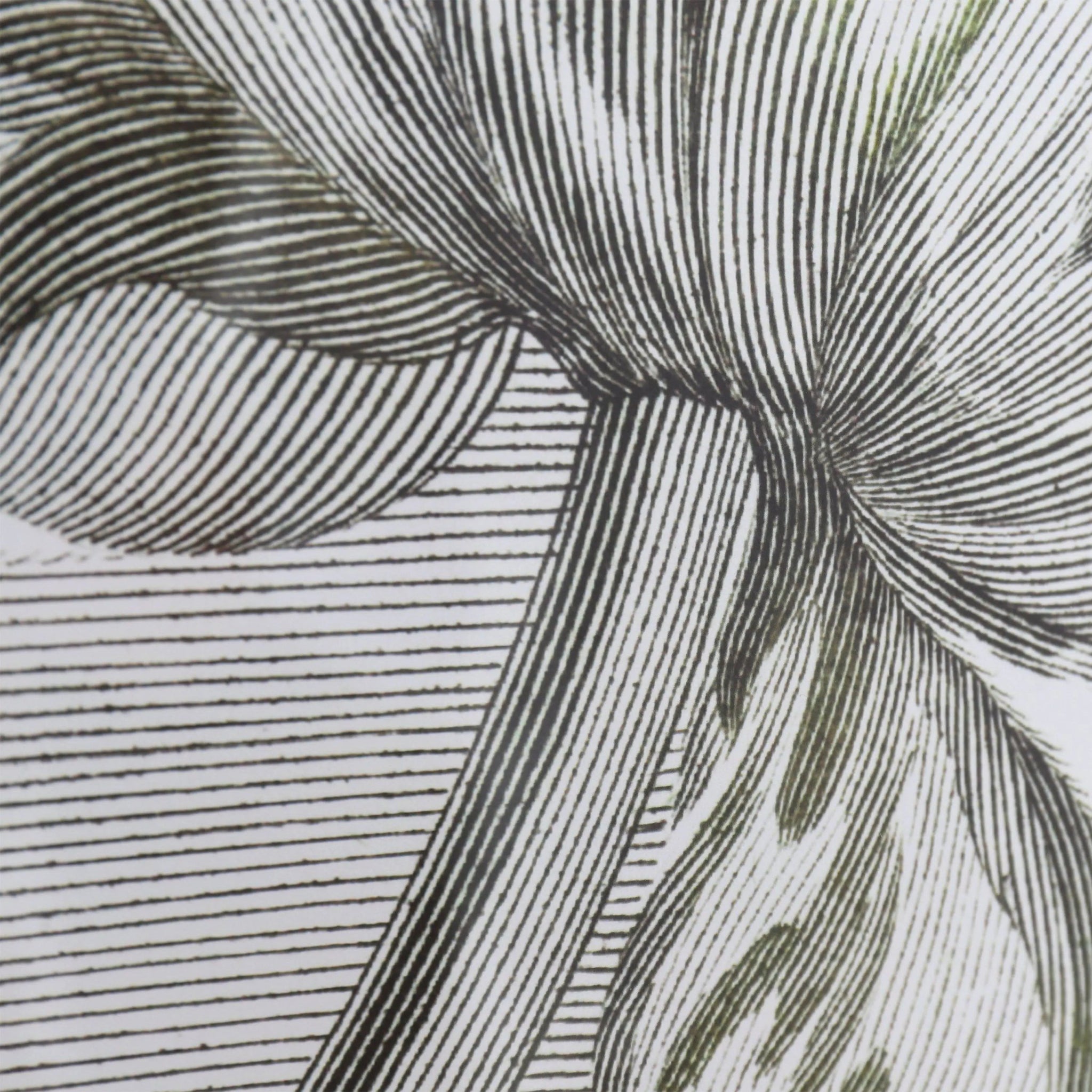 A pure appreciation of a tulip flower. Johan Teyler, a multitalented Dutch artist, carefully illustrates the dainty intricacies of its petal design. Through a green colour palette, the shading reveals a wild composition through paint and pencil. A decorative olive green coloured mount emphasises the glazed print. Using a gentle colour palette, a slimline brown frame with a gold lip heightens the wall art.