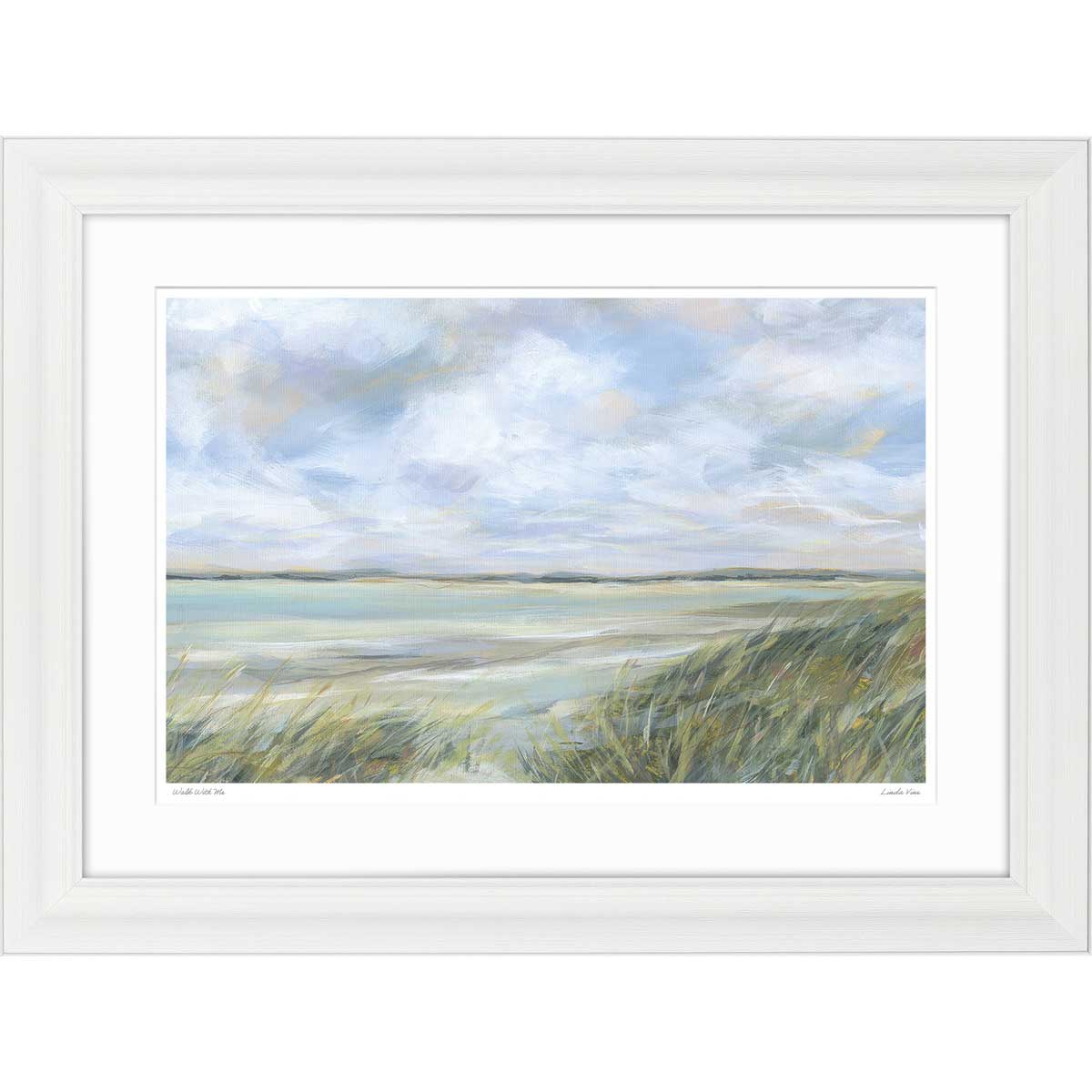 The 'Walk With Me' coastal print beautifully captures the serene essence of nature with its soft colour palette and tranquil imagery. Featuring a white frame and mount, this piece is designed to complement a variety of interior styles, adding a touch of contemporary elegance to your space. The print showcases gentle waves lapping against grassy dunes under a vast sky, evoking a sense of calm and connection to the coast. Crafted with quality materials, it ensures durability and longevity, making it a timeless addition to your home. Ideal for living rooms, bedrooms, or hallways, this artwork enhances your decor while inviting a breath of fresh coastal air into your surroundings.