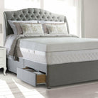 The full length Richmond headboard embodies tradition and provides a classic touch to the beautifully upholstered divan set.