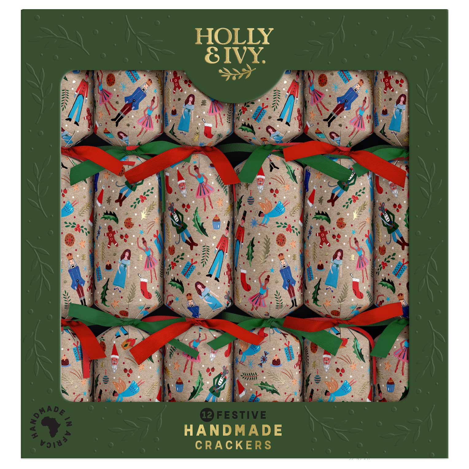 Elevate your holiday celebrations with our Nutcracker Christmas Crackers, a curated pack of 12 that embodies festive cheer. Each cracker is adorned with playful illustrations of nutcrackers and holiday scenes, set against a warm, textured background. Finished with vibrant red and green ribbons, these crackers add a lively touch to your table setting. Inside each cracker, you’ll discover a delightful surprise—a fun gift, a light-hearted joke, a colourful hat, and a classic snap to enhance the excitement. Crafted with quality materials, these handmade crackers ensure durability and enjoyment for every gathering, making them the perfect choice for family dinners or festive parties. Celebrate the season in style and create lasting memories with these charming additions to your holiday festivities.