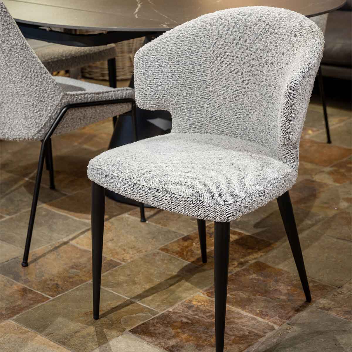 The Bella dining chair in boucle fabric is a real retro throwback to the 50's, with exceptional comfort thrown in. Available in a light grey boucle, the fabric is exceptionally tough, its made with everyday use in mind. With a comfortable curved back and detachable legs, these chairs are perfect for a contemporary dining room.