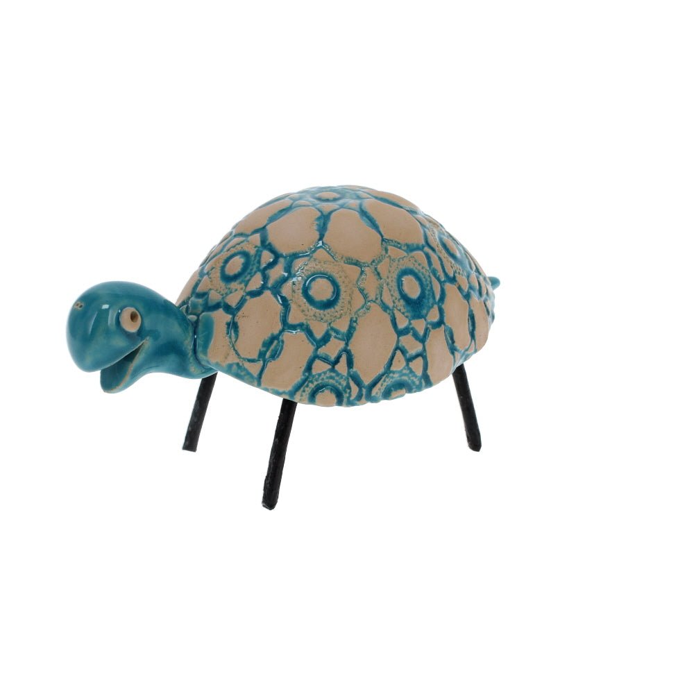 Flash is handmade and glazed in vibrant mint with detailing in his shell left unglazed to produce this pleasing tactile look. He stands on metal legs. Flash would enjoy spending the rest of his days on a window ledge or mantlepiece.