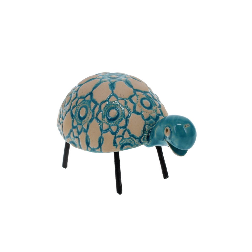 Meet Flash the Tortoise, a vibrant turquoise pottery tortoise full of character.