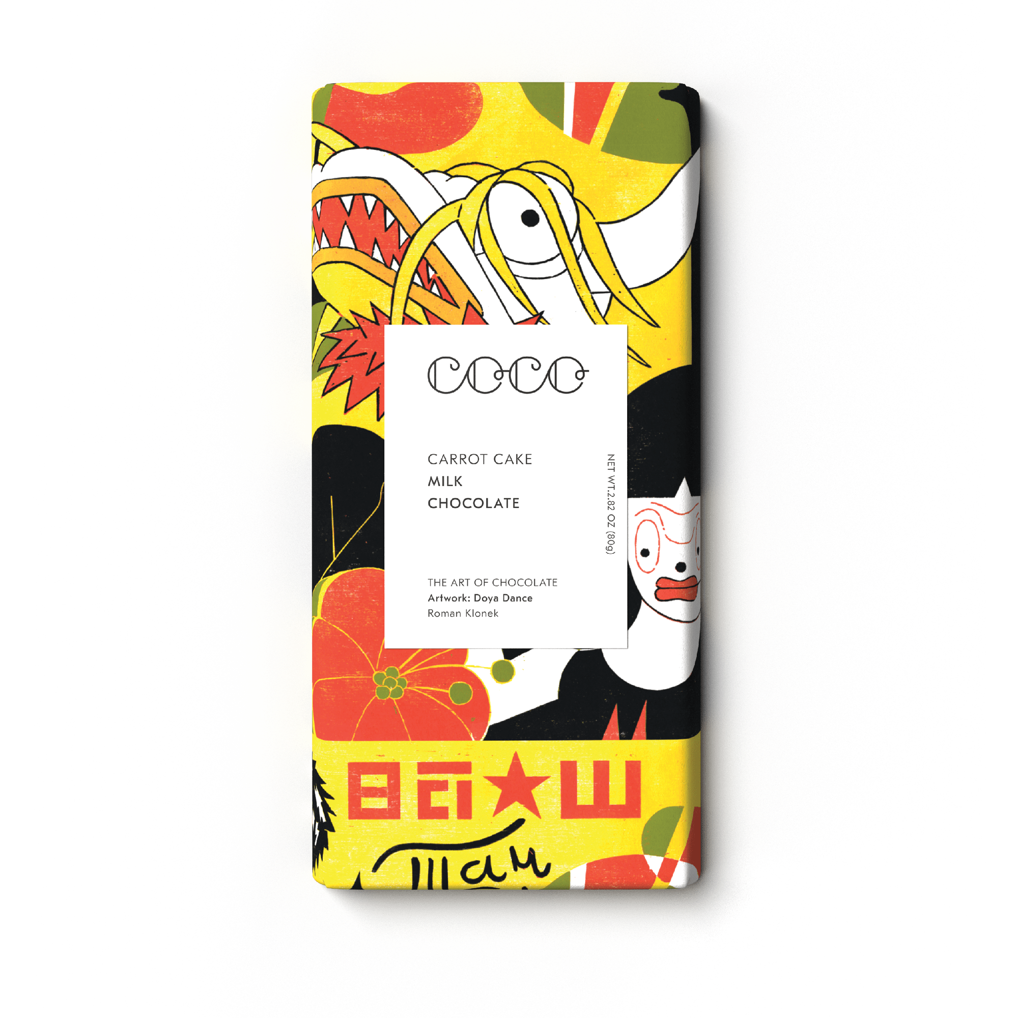 Inspired by Carrot Cake, this smooth and creamy milk chocolate with 40% cacao presents the sweetness followed by the texture and comforting flavours reminiscent of carrot and hints of vanilla.