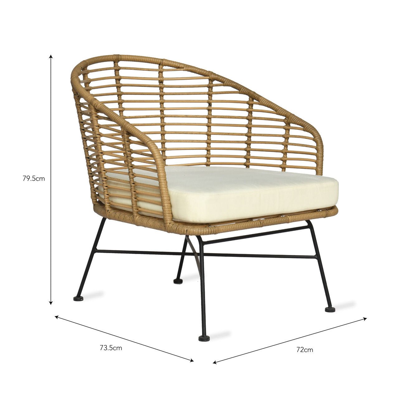 Each chair is crafted from strips of PE bamboo, a natural coloured weatherproof material which has been wrapped around a lightweight yet sturdy steel frame. The Windsor style curved back and arms offer support and the deep seats allow you to recline with a good book or drink in the sunshine!