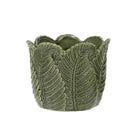 Our galzed green leaf design pot is a lovely addition to any room. Large enough to hold a sizeable houseplant and pretty enough to hold a growing bulb, this plant pot is a great choice. Glazed inside to bear water and moisture so your surface is protected from your plant.