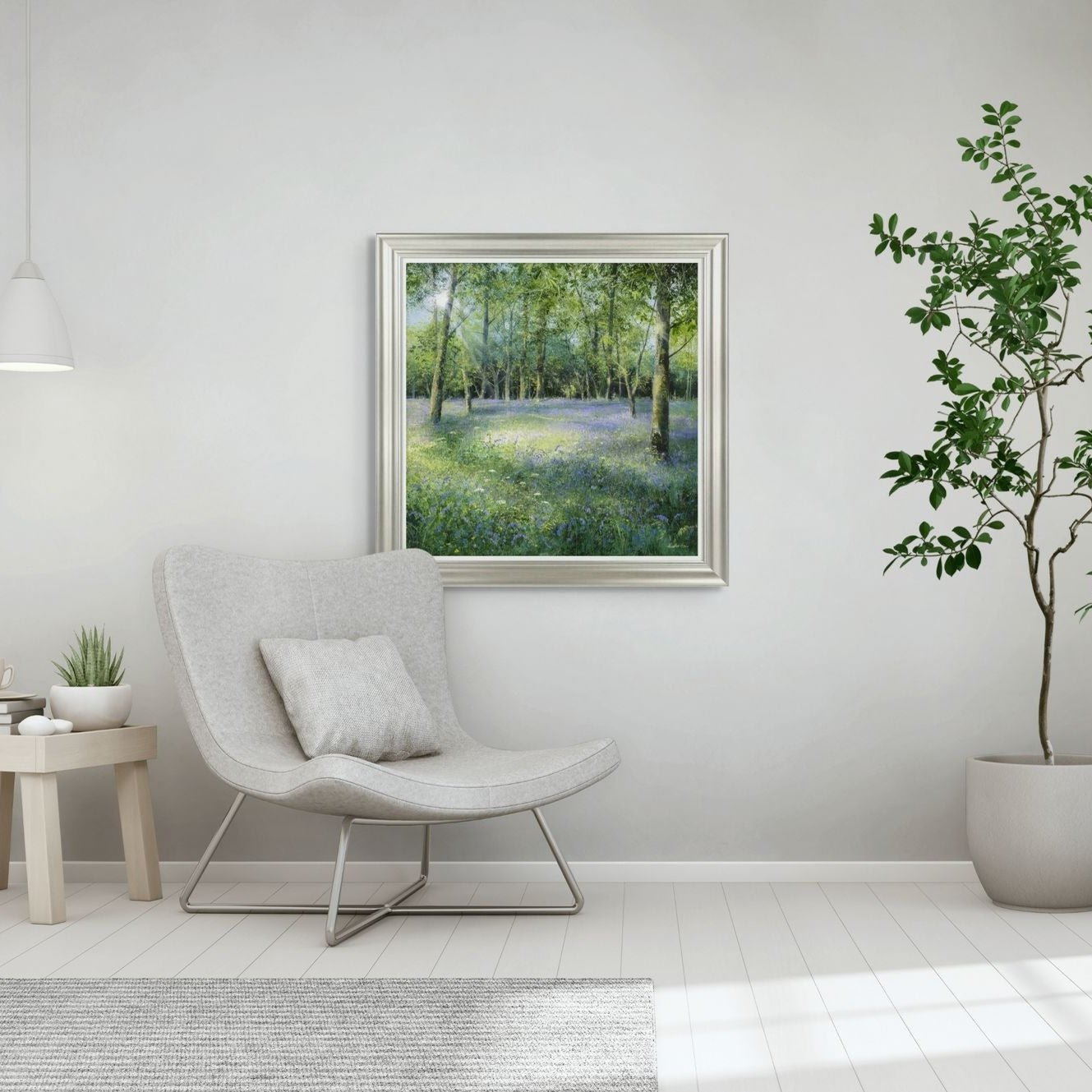 The Bluebell Glade is a stunning hand-finished piece that captures the serene beauty of a sunlit forest floor blanketed in bluebells. Crafted without glass, the textured gel finish adds depth and a unique tactile quality, making it a standout in any contemporary setting. The vibrant greens of the foliage contrast beautifully with the soft purples of the flowers, creating a harmonious balance that draws the eye. This artwork is not only visually captivating but also practical, as its durable materials ensure longevity, allowing you to enjoy its beauty for years to come. Ideal for living rooms, bedrooms, or hallways, the Bluebell Glade is a testament to timeless craftsmanship and curated design.