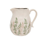 This delicately hand-patterned cream, crackle-glazed, ceramic jug with a pretty green fern design is a great addition to any interior setting as a stand-alone piece or a perfect vessel for faux or dried flowers.
