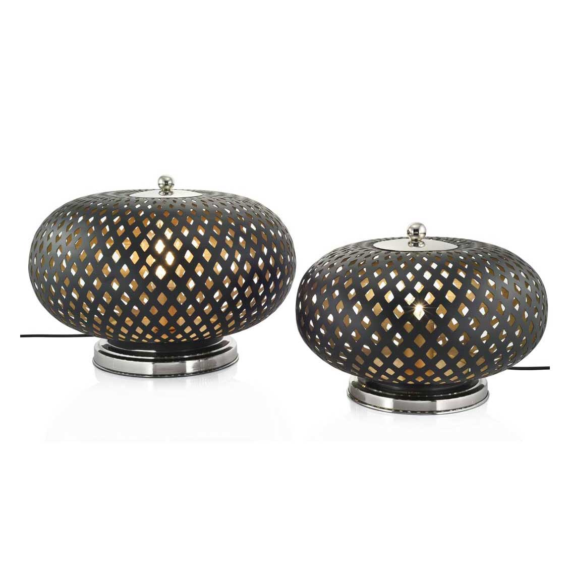 The Makti Quilt Lamps are designed as the perfect companions to our Babloo Quilt Lamps. These black Makti lamps are a stunning combination of elements, combining a shimmering gold interior with a matte black exterior. Their beautiful ellipsoid shape, avaialble in two sizes are adorned with cutaway patterns, adds a touch of elegance to any space.