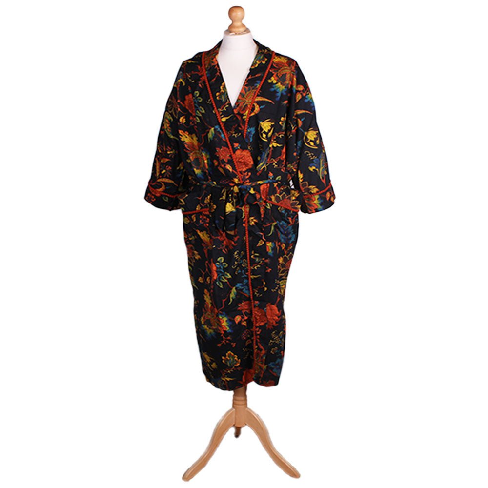 Our printed dressing gown is made from beautiful lightweight cotton – it's elegant and easy to wear, and the wraparound style fits all sizes from 8 to 16 (making it an ideal gift).