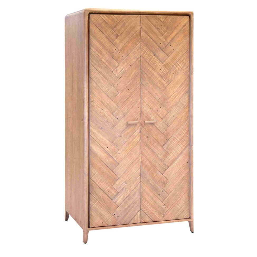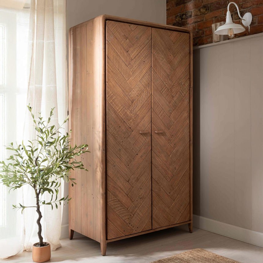 The Arthur Wardrobe, part of the Arthur Bedroom range, showcases a striking herringbone design that adds a touch of contemporary elegance to any space. Handcrafted from 100% reclaimed FSC timber, this wardrobe exemplifies quality craftsmanship and sustainability. Its natural wood tones create a warm, inviting atmosphere, while the understated wooden handles provide a seamless finish. With ample storage space, the Arthur Wardrobe is both functional and stylish, making it an ideal addition to your bedroom. Complementing items, including matching wardrobes and beds, are available to create a cohesive look throughout your space.