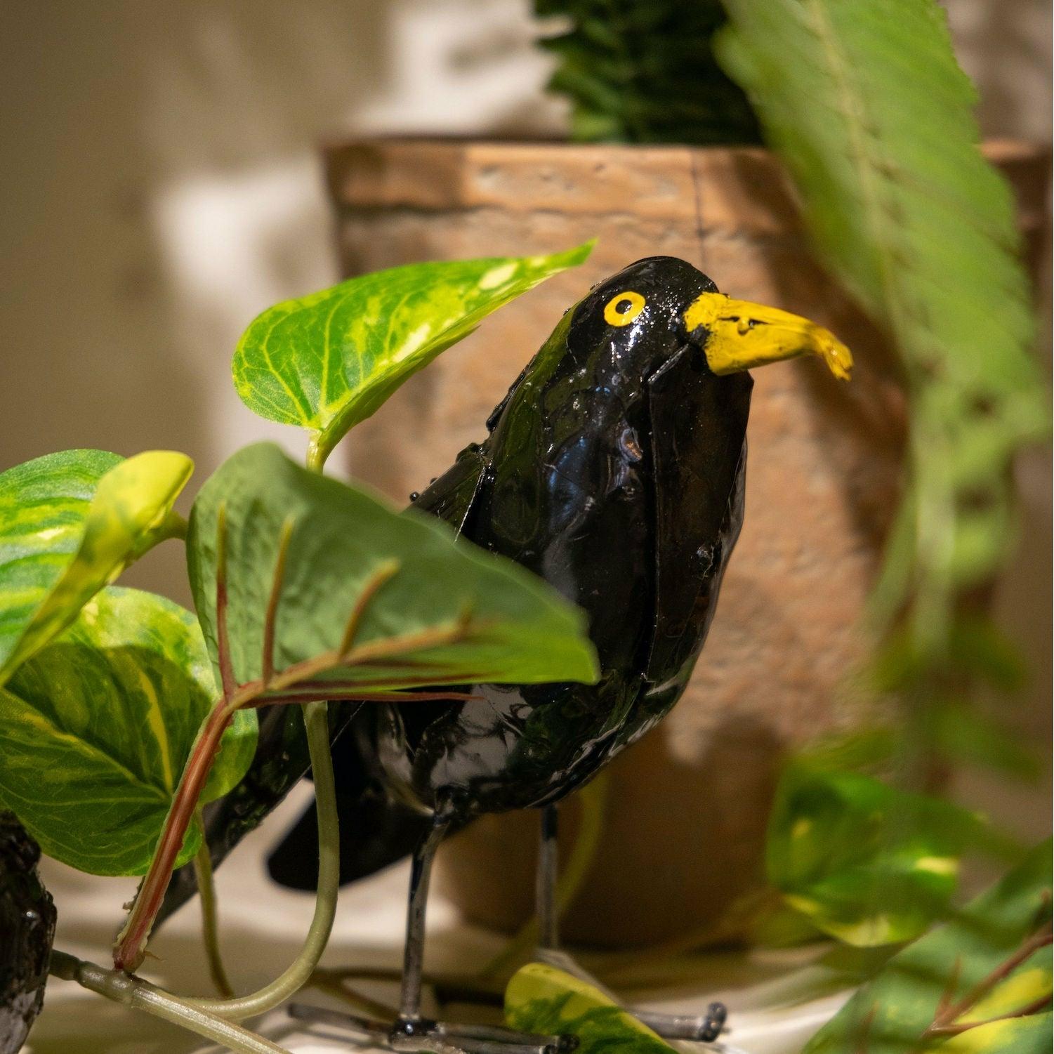 One of Britain's most common birds, this Blackbird is handmade from recycled factory offcuts by artists in Zimbabwe.