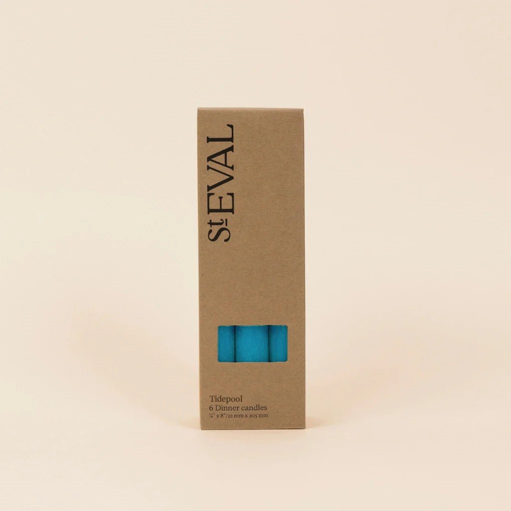 Bring the wild in with our pack of 6 Tidepool 8” Dinner Candles. A clear, ocean blue dinner candle.