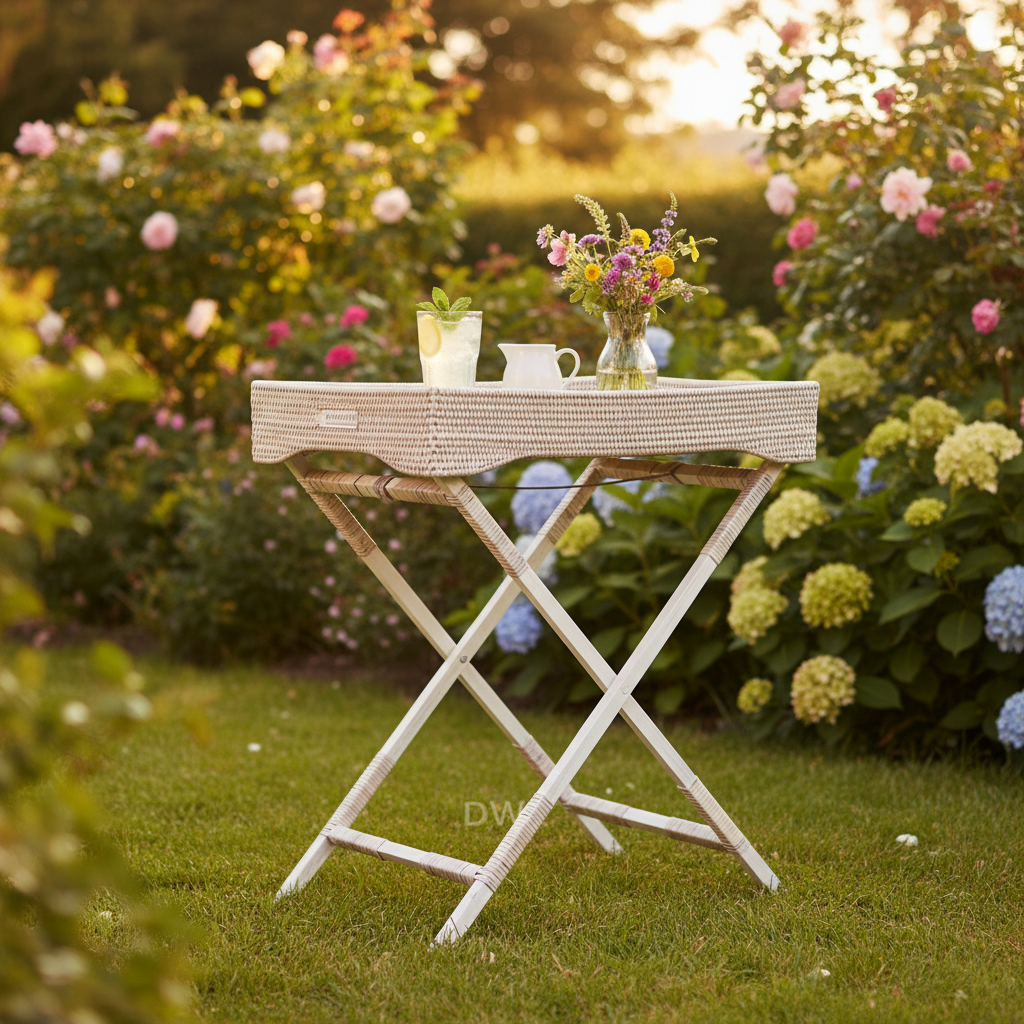 The Rattan Butler Tray combines contemporary design with practical versatility. Crafted from rattan and set on sturdy wooden legs, it offers a stable surface for serving drinks, displaying decorative pieces, or keeping essentials close at hand. The removable tray features woven detail, adding subtle texture that complements both classic and modern spaces. Lightweight yet durable, the tray can be lifted off and used on its own, while the foldable legs make for easy storage when not in use. Perfect for living rooms, bedrooms, or entertaining spaces, it is a timeless addition to any curated home.