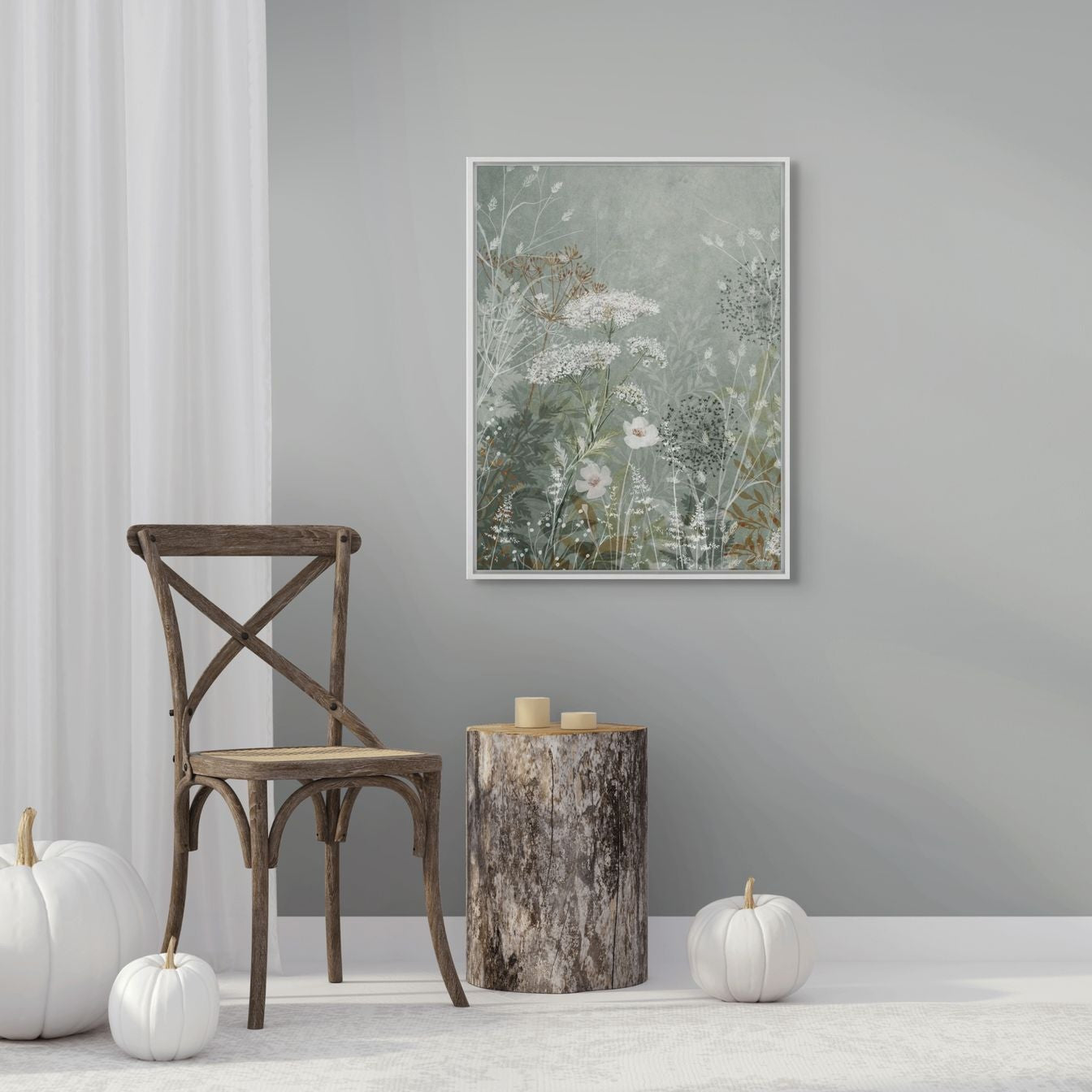 The Wild Sage Meadow 1 is a beautifully framed canvas artwork that captures the serene essence of a meadow in bloom. Set within a thin wooden frame, this piece showcases delicate botanical illustrations in soft, muted tones of green, cream, and subtle earthy hues. The intricate details of flowers and foliage are rendered with precision, evoking a sense of tranquility and natural beauty. Crafted with quality materials, this artwork not only enhances the aesthetic of any room but also offers durability that stands the test of time. Measuring 84cm high, it is easy to style in a variety of spaces, from contemporary living rooms to cozy bedrooms. Enjoy the timeless craftsmanship and curated design that make the Wild Sage Meadow 1 a perfect addition to your home decor.