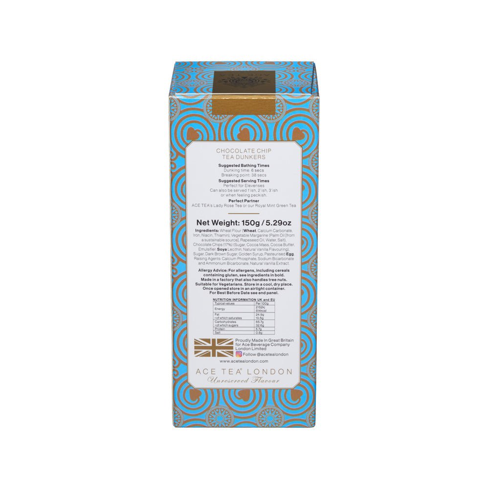 These delicious Chocolate Chip Tea Dunking biscuits compliment a cup of tea to perfection. 10 Chocolate Chip biscuits in every pack, each made with pride in Great Britain. Perfect for elevenses, to share and as a gift.