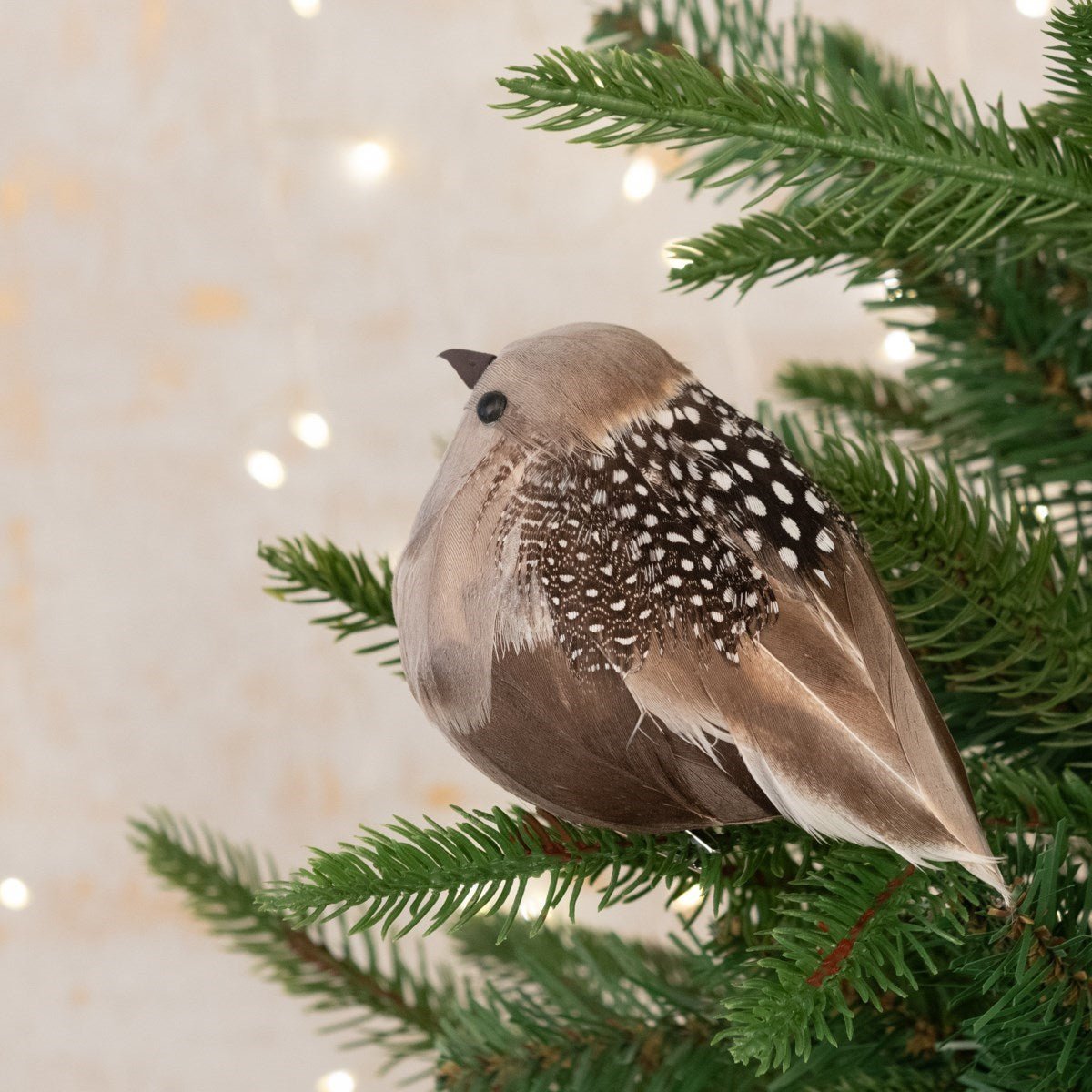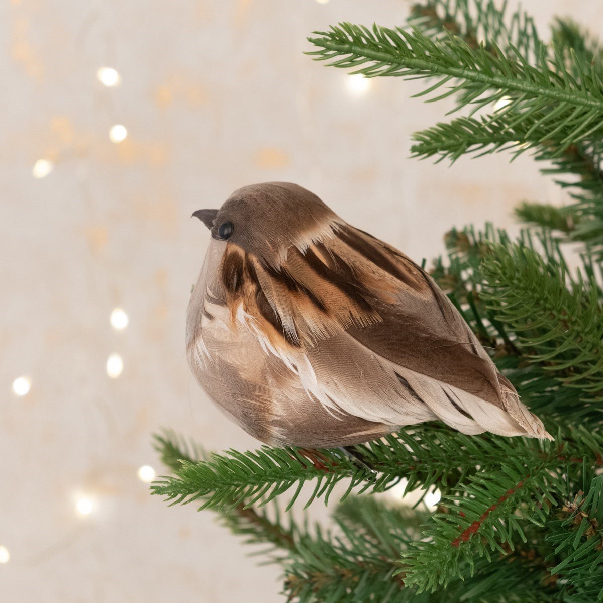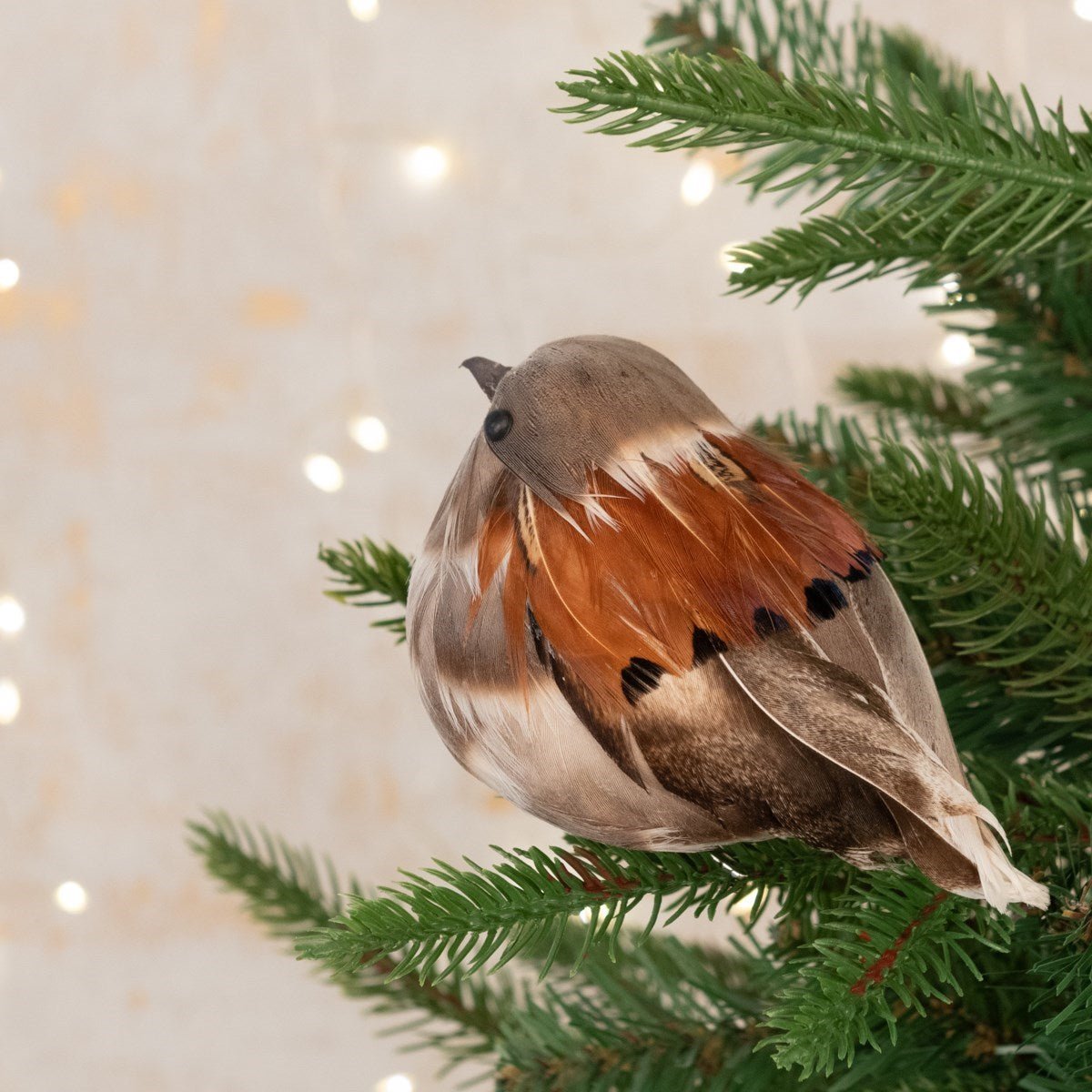 A small faux partridge decoration. With real feathers skill-fully glued to a lightweight body, this partridge decoration would look amazing on a tree or woodland festive decoration. Each partridge has slightly different colouring, we will chose from the styles we have available at the time of the order, at random.