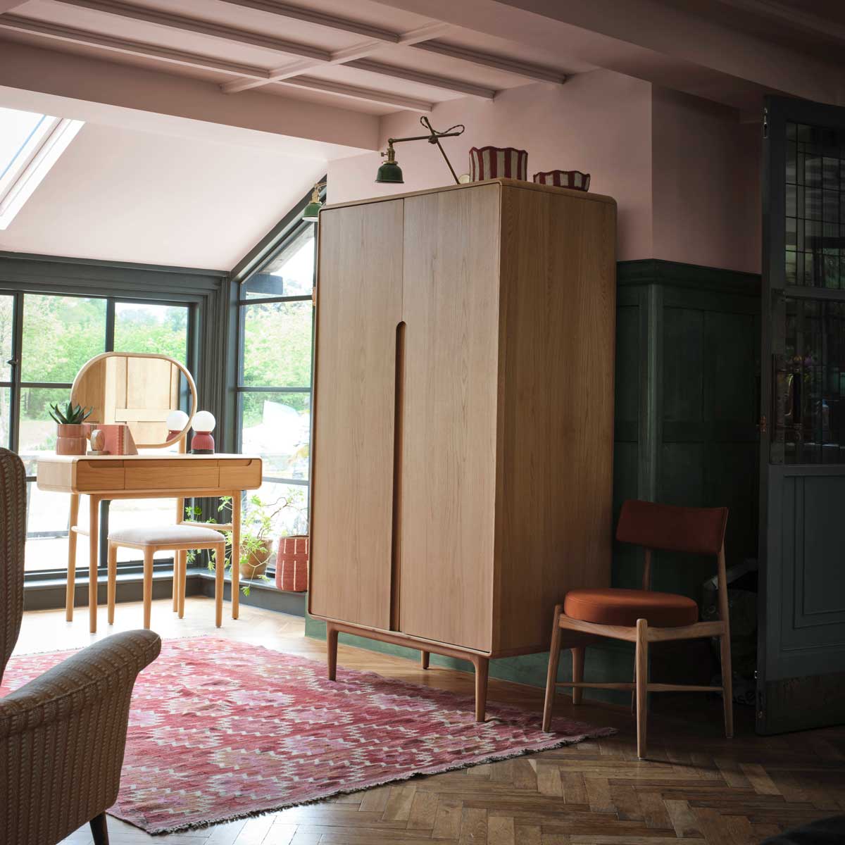 Made from solid Oak with carefully selected veneers, the natural timber tones add a welcoming warmth to any home. Across the G Plan Winchester bedroom collection there are different sizes of chest of drawers, three bed widths and a dressing table with matching stool too.