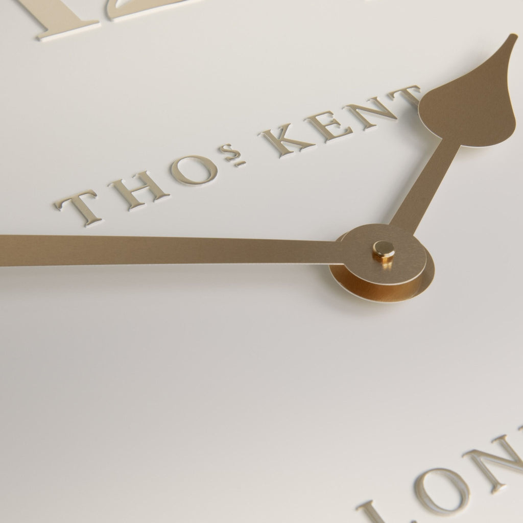 This cream wall clock is in a soft cream colour way with contrasting gold numerals.