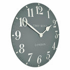 A large 20" soft slate Blue wall clock. This Arabic clock in Flax blue is from a range of signature Thomas Kent clocks with hints of Farrow & Ball colouring and contrasting hands and numbering.