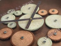 A contrasting metal and stone effect bring the wheels to life. Arranged on a 30", Bronze effect dial, an antique style metal frame completes a statement Bronze cog clock. The modern numerals reveal the bronze colour, creating a stunning appearance.
