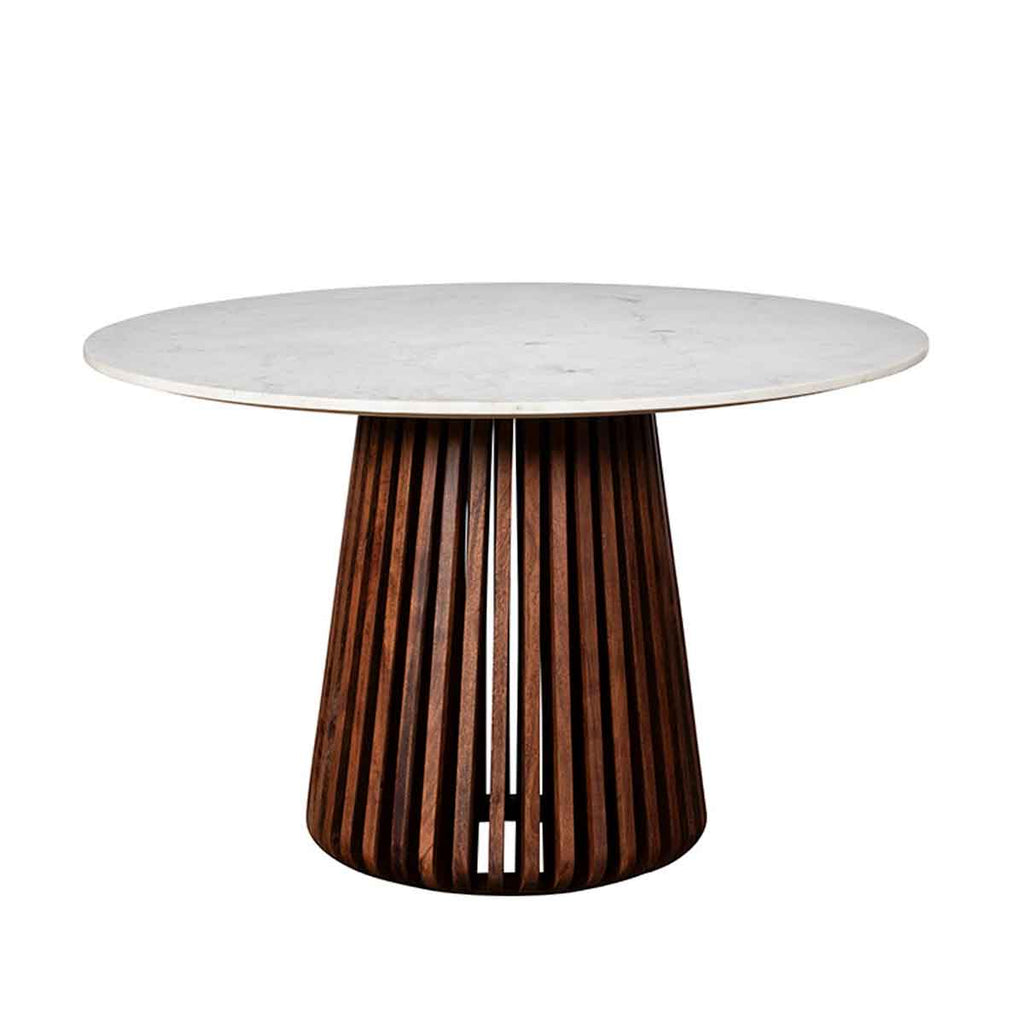 The Alton dining table is the perfect blend of natural beauty and contemporary design. The deep, rich tones of the curved wooden frame are contrasted by the bright white marble surface, creating a fresh and contemporary Marble dining table.