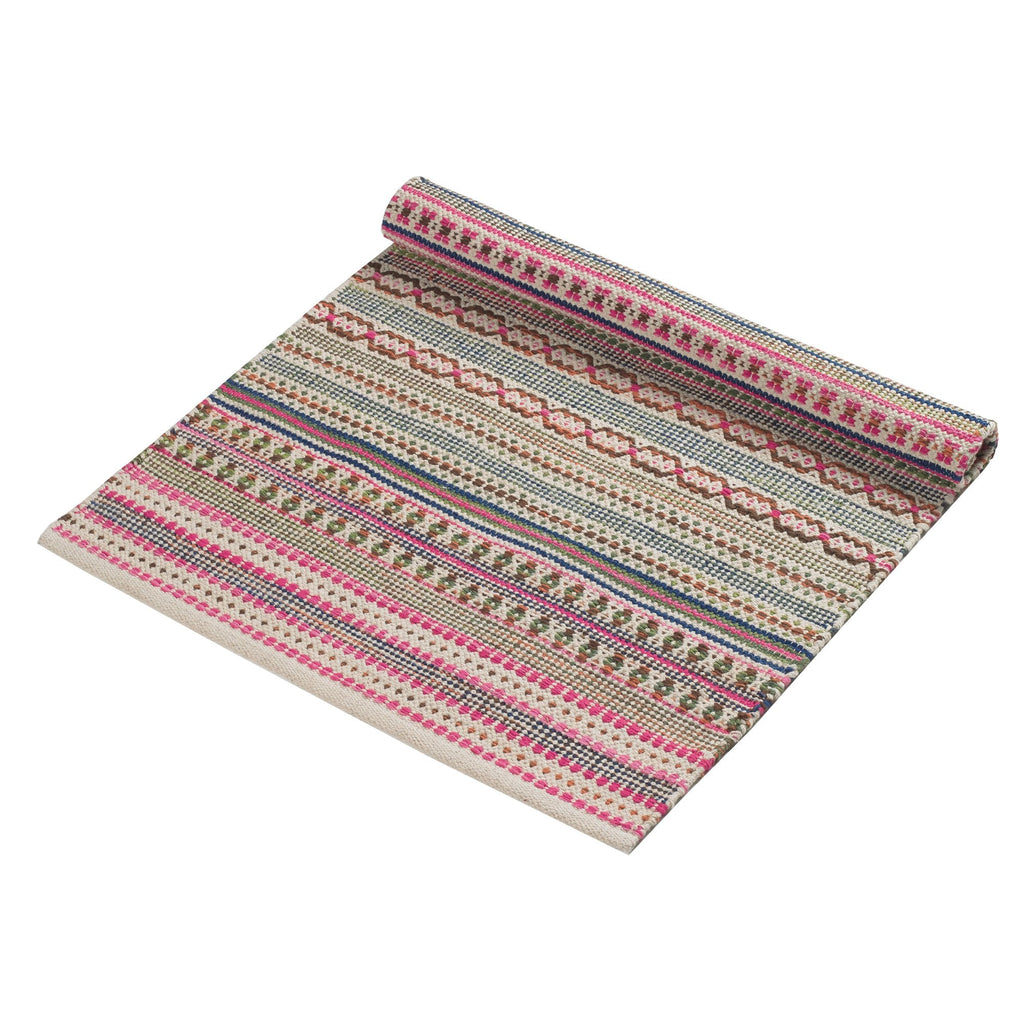 Our colourful Bakewell rug is made from 100% cotton. Using pinks, greens and blues in a delicate design, this rug will brighten any hallway