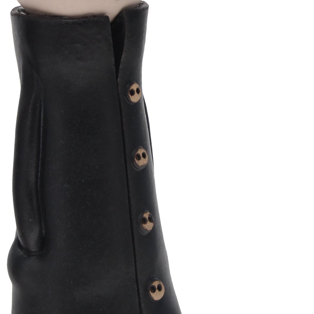 This quirky fellow is handmade and packed with personality and charm. Dressed in a long black coat, this guy is clearly a man about town!
