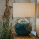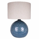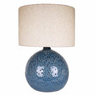Inspired by the seabed, this Blue Dot Ceramic Lamp is a stunning piece. The surface of the lamp looks equally amazing when it's on as it does when it's off. This contemporary table lamp enhances the look of a modern room or a more traditional one. The rich glaze which is darker on the dots as the glaze pools and runs add a lovely effect to this stunning table lamp. The natural colour linen shade allows this lamp to suit a huge variety of room schemes and really brings together your chosen colour palette.