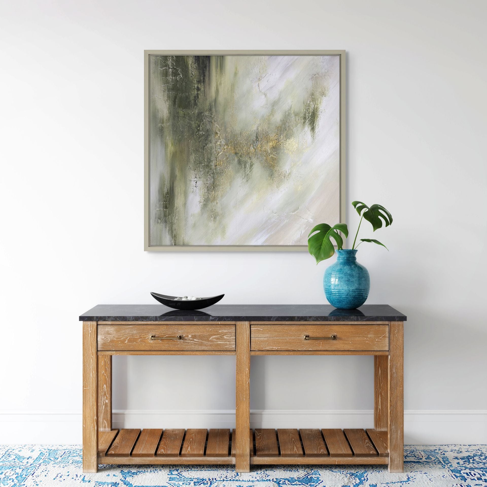 The Celestial framed artwork features a captivating float canvas adorned with delicate gold foil embellishments, adding a touch of sophistication to any space. The abstract design integrates muted greens and soft whites, creating a serene yet dynamic visual experience. The thin sand-coloured frame enhances the artwork's contemporary feel, allowing it to blend seamlessly with various decor styles. Crafted with attention to detail, this piece not only serves as a focal point but also reflects timeless craftsmanship. Ideal for living rooms, offices, or bedrooms, the Celestial artwork is easy to maintain and is designed to endure, making it a perfect addition to your curated collection.