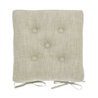 Our natural chambray seat pad is 100% cotton. Designed to fit a standard dining or kitchen chair. Buttoned to retain shape and provide support with ties to secure it onto the chair.