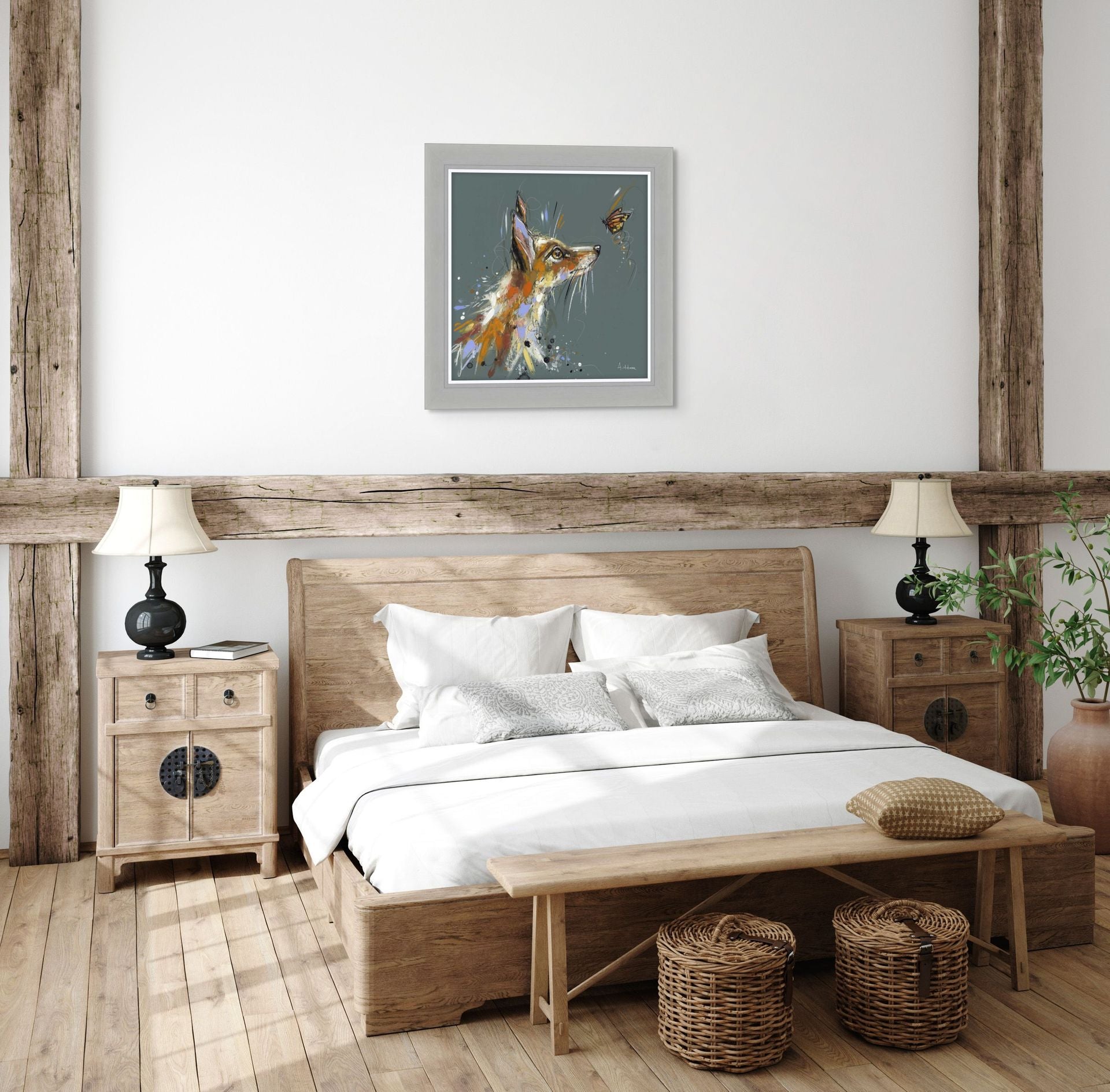 The 'Chasing Butterflies' artwork features a striking grey frame complemented by a crisp white mount, enhancing the vibrant colors of the piece. Hand-finished with a textured gel, this piece offers a unique, tactile quality without the use of glass, allowing the artwork's rich details to shine through. The playful depiction of a fox gazing at a butterfly captures a moment of whimsy and curiosity, making it a captivating addition to any contemporary space. Its thoughtful curation and quality craftsmanship ensure that this piece will add charm and personality to your home for years to come.
