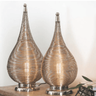Made by a process of carefully wrapping mild steel wire around a teardrop shaped frame, which is then held in place with a beaded weld. It's nickel plated to create a shimmering, atmospheric light,and the inside of the lamp is coloured gold for a rich, warm glow. The result is this stunning coil lamp that is pretty when unlit but stunning when is.