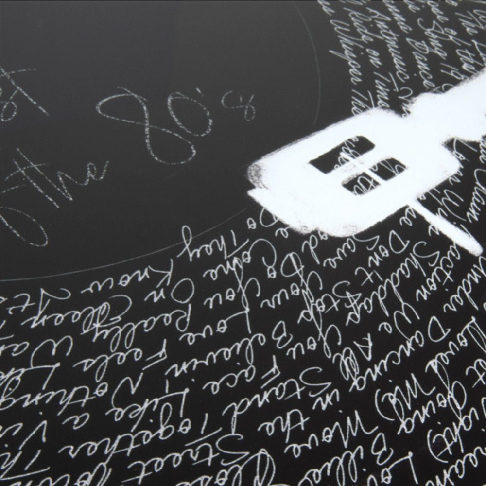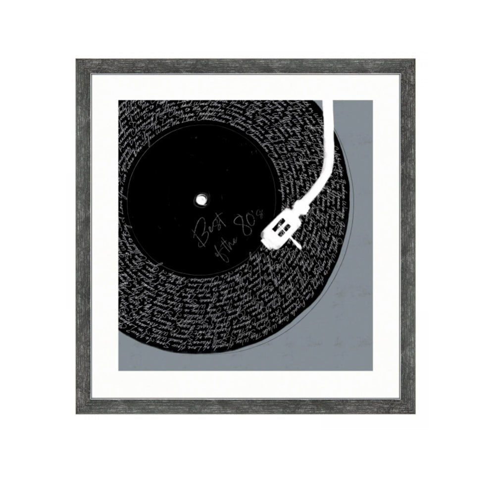 Bring a touch of nostalgia to your space with this contemporary artwork, capturing the essence of 80s music culture. The piece features a detailed illustration of a vinyl record in play, complete with handwriting. Its minimalist style makes it a versatile fit for a variety of interiors, from modern to classic. Presented in a sleek frame, this curated piece offers a simple way to add character to your home. Easy to hang and maintain, it’s an ideal choice for music lovers and those who appreciate timeless design.