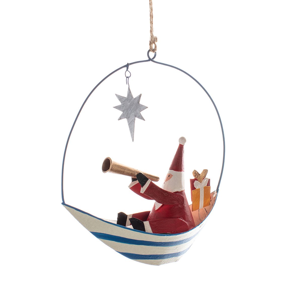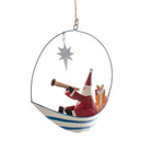 Sailing Santa with a telescope! This hand painted Christmas decoration has Santa sat in his boat, surrounded with presents, star gazing.