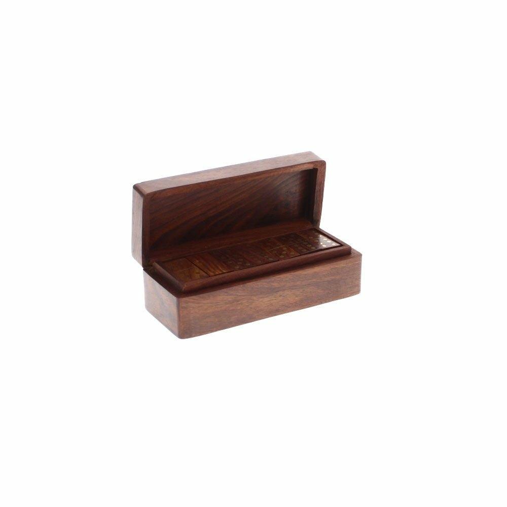 The lid is decorated with inlaid gold dominos. This box is a decorative item that would be at home in any room and would also make an ideal gift for a keen domino player