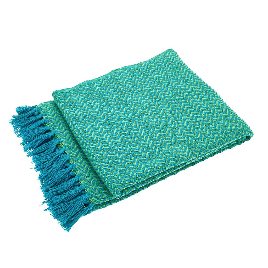 A zigzag patterned throw made from recycled cotton. This eco throw creates a striking look in a choice of 4 bright colours. Woven from recycled cotton, this is a soft, recycled cotton throw. Features a tasselled fringe.