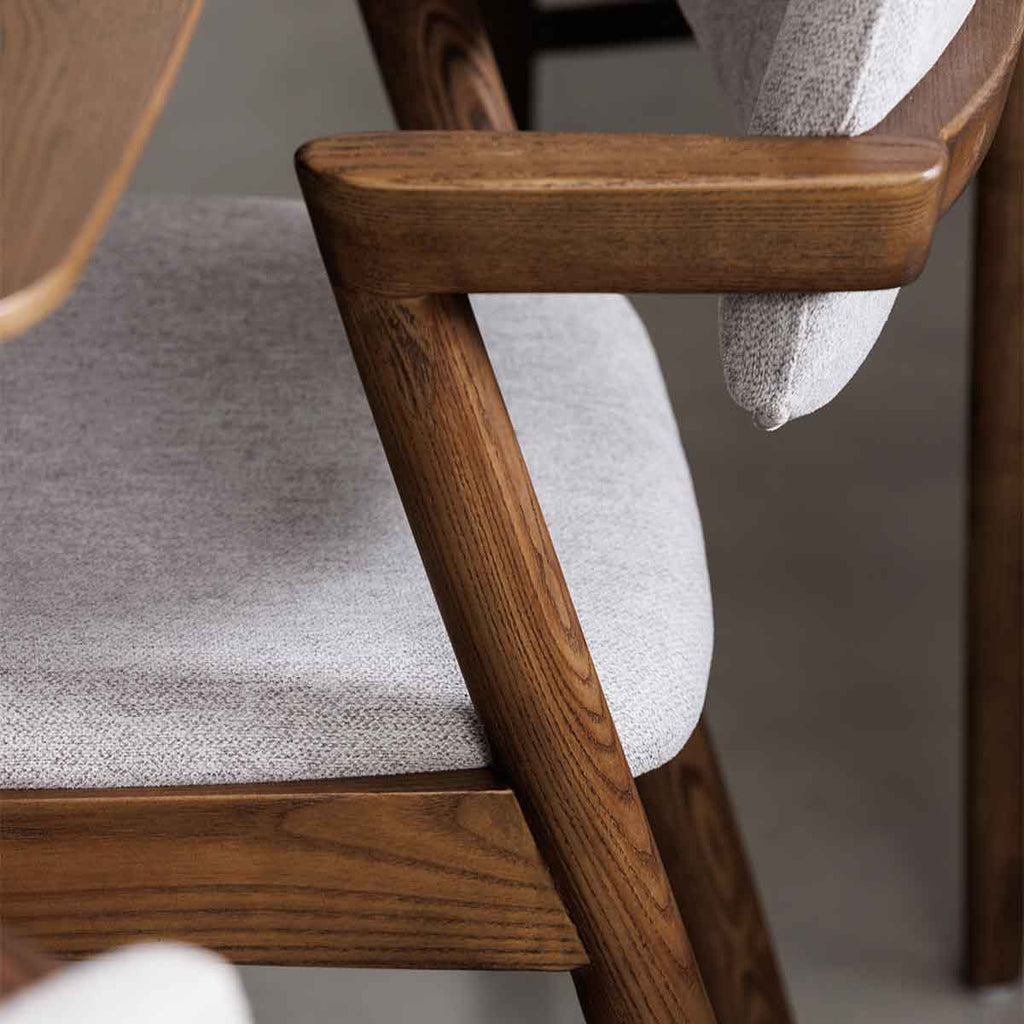 The gentle curves of the chair frame and legs create a smooth and stylish aesthetic which will match almost any decor, traditional or contemporary. This Darcy chair from G-Plan has a soft grey coloured seat pad and a back rest.