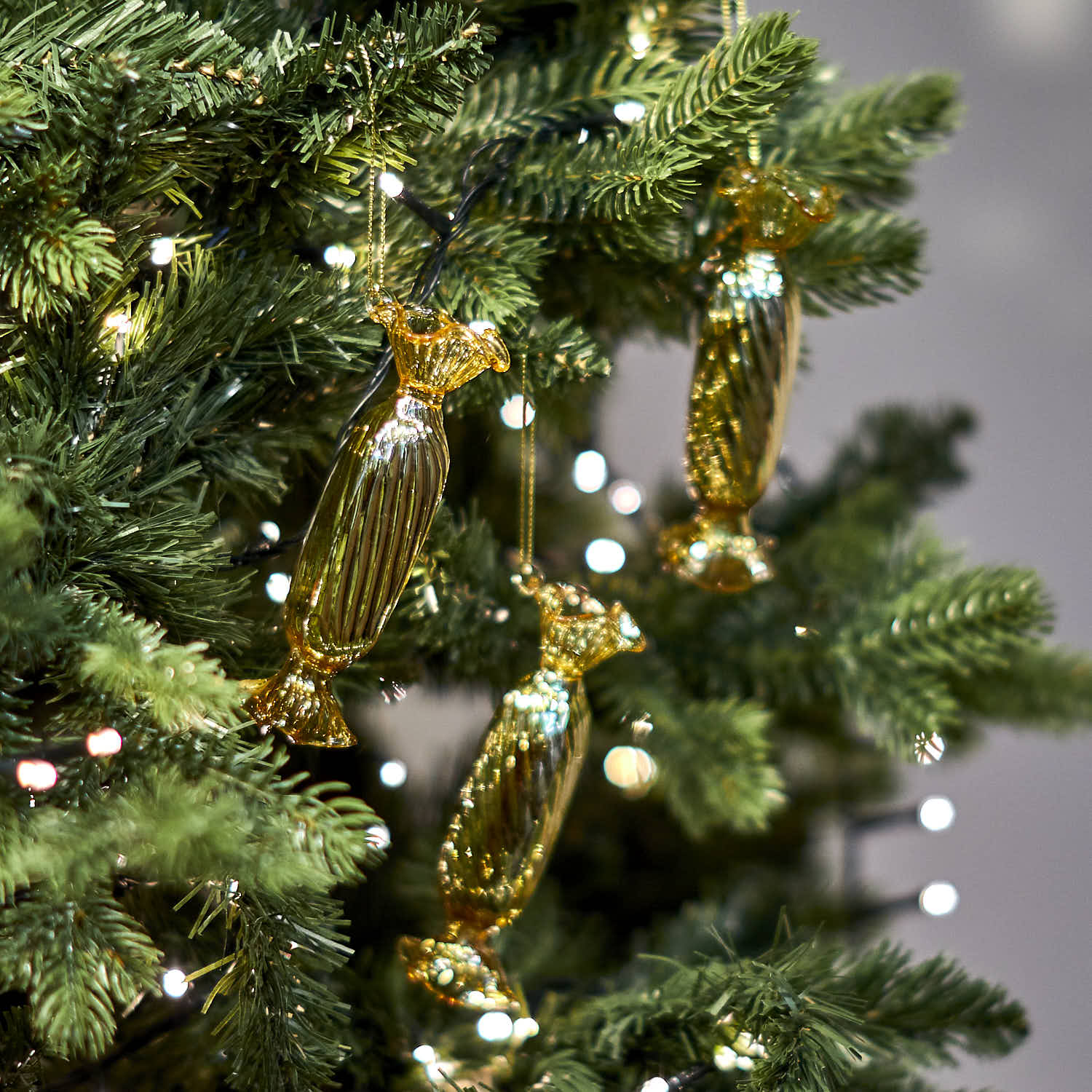 Add a touch of contemporary charm to your festive décor with the Glass Candy Sweet, Long decoration. Crafted from quality gold glass, this bauble features a distinctive toffee sweet shape, bringing a timeless yet playful element to your Christmas tree. The smooth glass finish catches the light beautifully, while the included hanging string makes it easy to display on branches, garlands, or wreaths. Meticulously curated for both durability and style, this piece is designed to complement both modern and classic interiors. To maintain its appearance, simply wipe gently with a soft, dry cloth.  A refined choice for those who appreciate understated craftsmanship and quality detail.