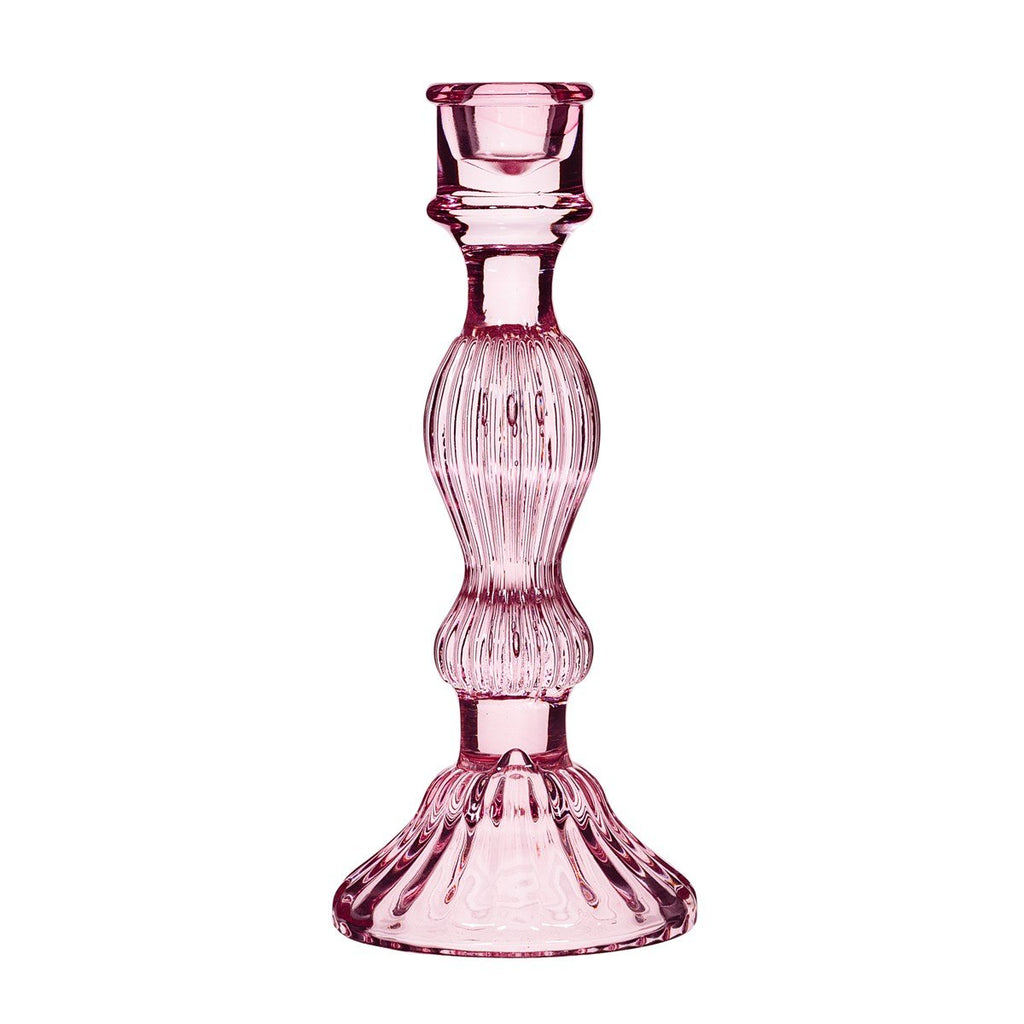 Our pink glass candleholder is part of a collection of vintage style coloured glass candleholders, perfect for adding a vibrant splash of colour to any table, sideboard or window sill.