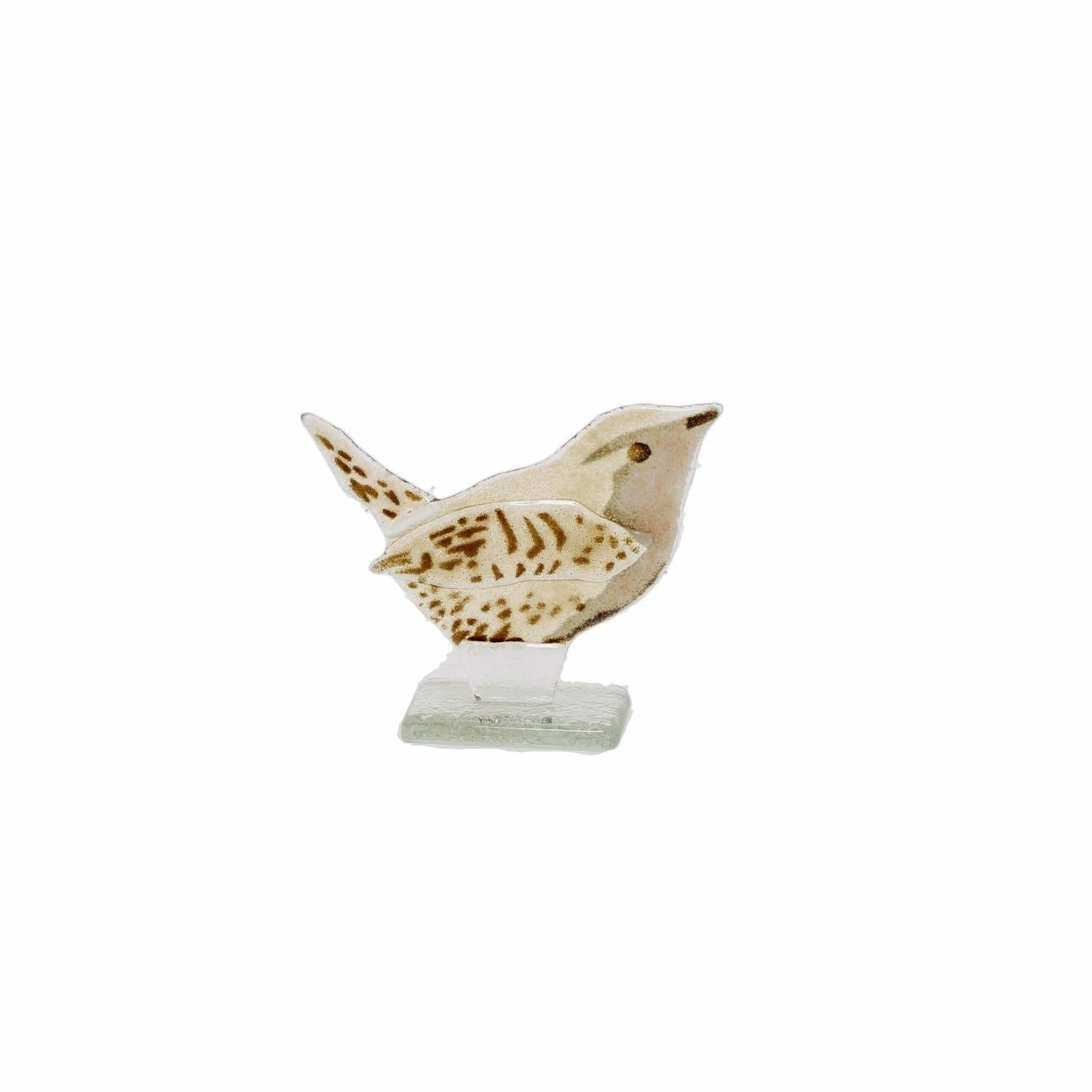 This is a jolly little ornament, a fused glass Wren, what a joy!