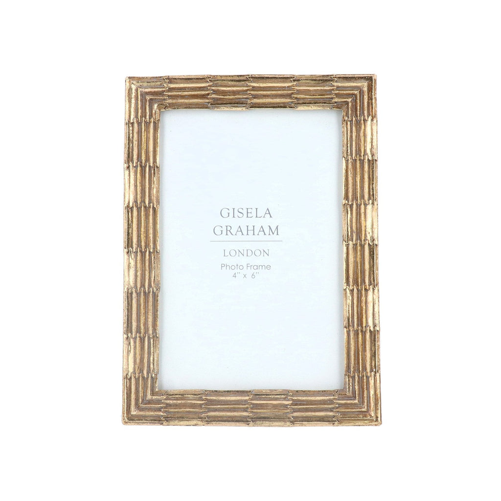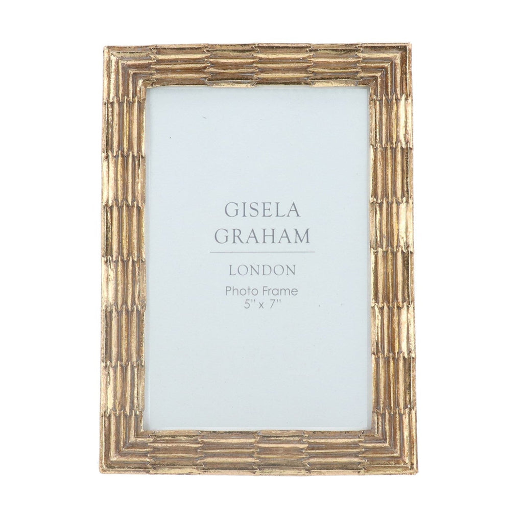 A golden groove effect photo frame, with a metallic effect. Available in two sizes to suit either a 7 x 5" or 6 x 4" photo. Each golden coloured frame has a hand finished paint effect design, so the precise finish may vary slightly.