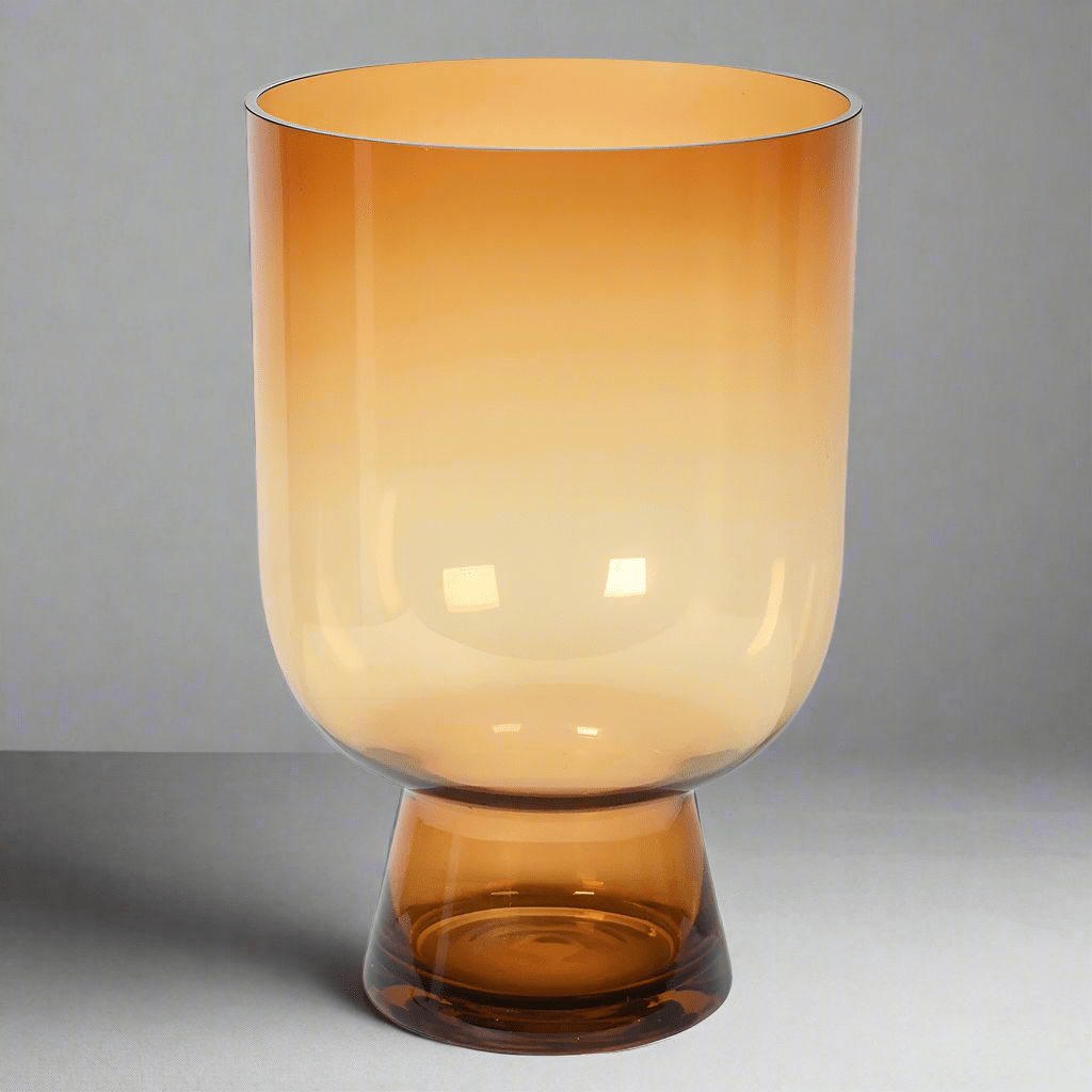 A large glass vase in a wonderfully soft amber and gold glaze. Perfect for spring blossoms or to brighten up a dark corner.
