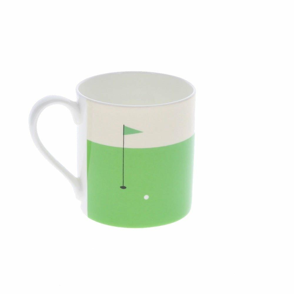 Featuring a golf bag in a hand-drawn illustrative style set on a green fairway background this mug is as characterful as it is useful.