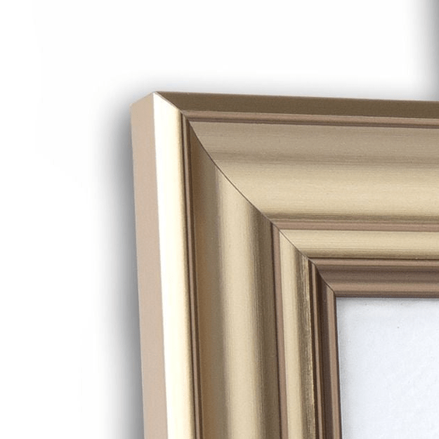 A simple gold coloured wooden photo frame available in a choice of 2 sizes.