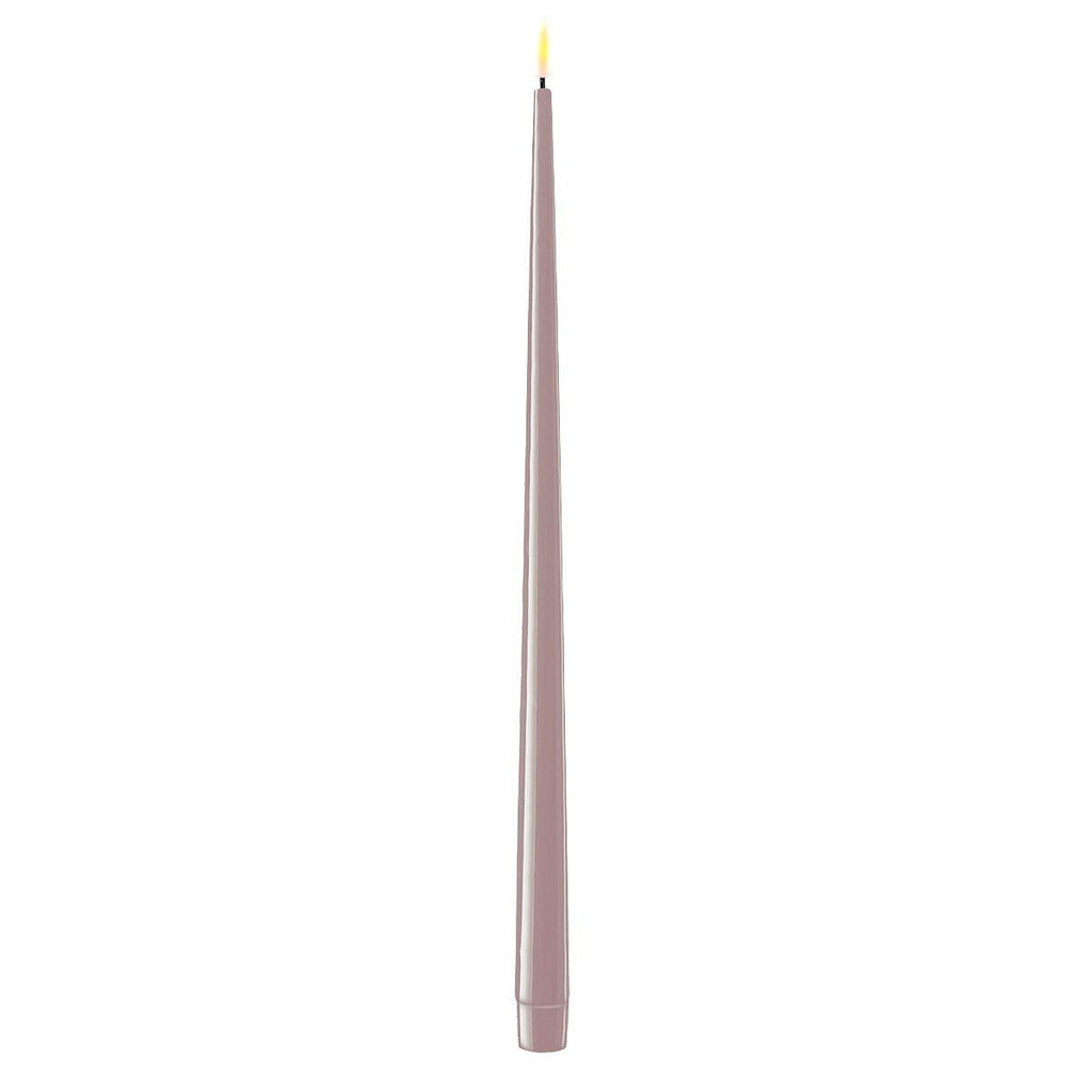 Our LED flameless candles are elegant and luxurious flameless versions of traditional dinner candles. We sell these in a variety of colours with a glossy finish made in a super realistic stearic plastic with a vivid, realistic flame and what appears to be melted wax around the flame.