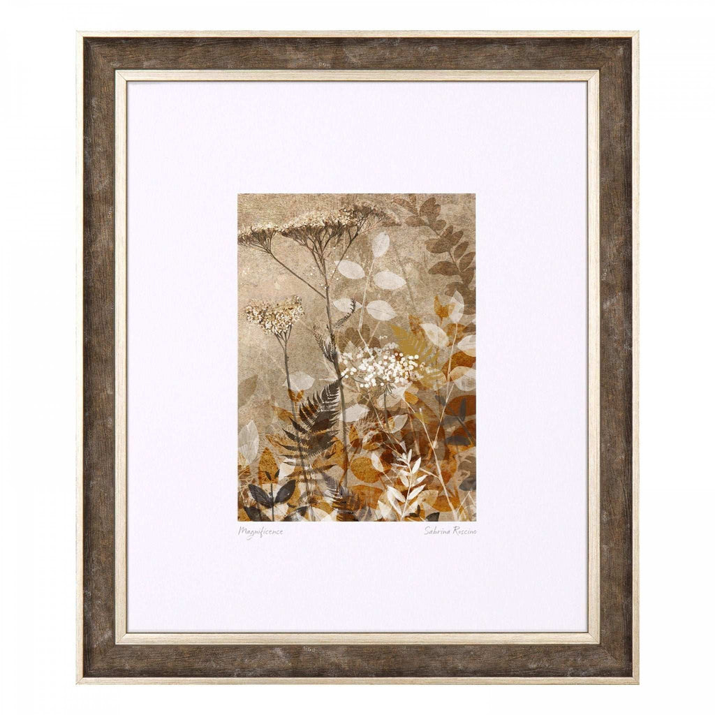 An enchanting wild meadow in bronze and gold sits beautifully against a dramatically textured backdrop of warm beige in this framed print.