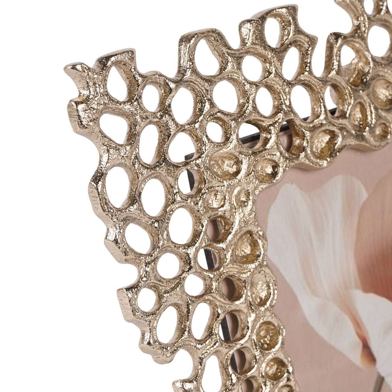 The Miel Cast Aluminium Photo Frame is made from champagne gold-coloured, handcrafted cast aluminium. This frame features an organic style design in a honeycomb pattern.